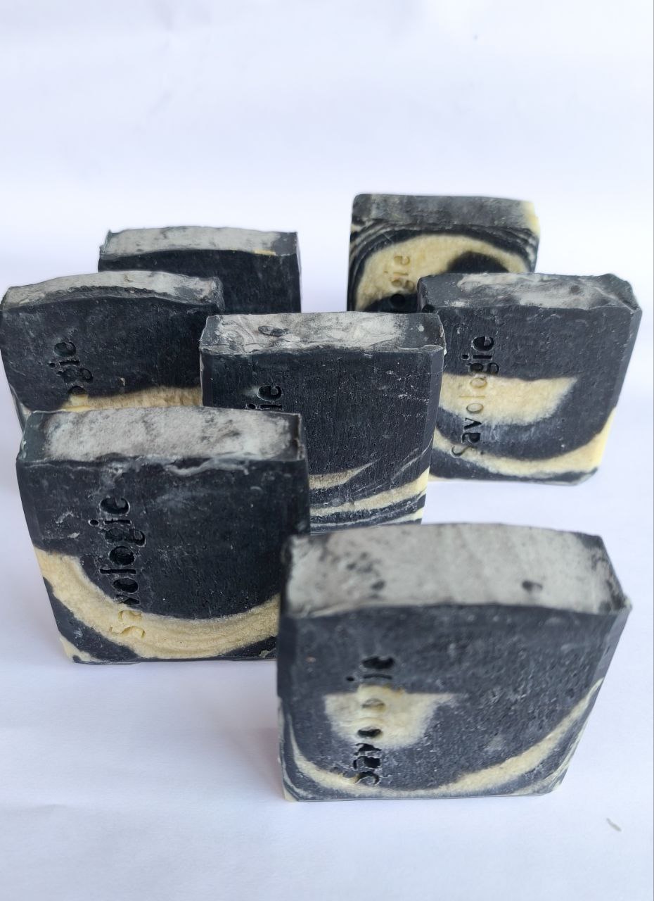 Igredientes: Azeite de oliva extra virgem, óleo de coco, manteiga de cacau, óleo de amendoas. Carvão vegetal ativado, argila branca